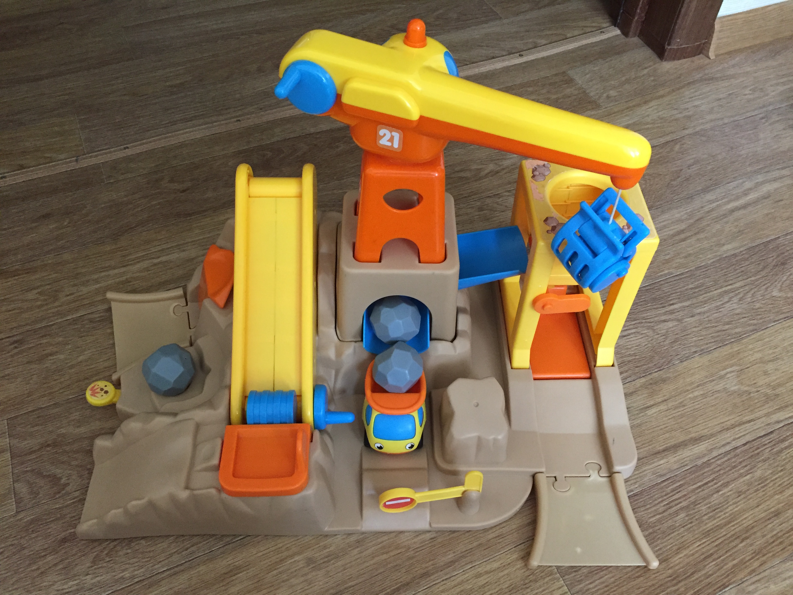Состояние хорошее, но отсутствует резиновая конвейерная лента. Была у ребенка любимой игрушкой, пластик не убиваемый. Розничная цена от 2000 руб.